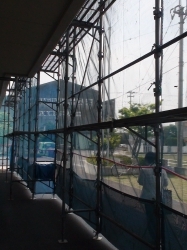 ネムの木が、鉄骨とブルーシートに覆われてます∟(@-@)Γ
