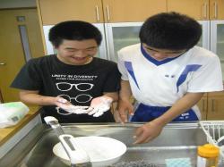 白玉粉に水を入れて耳たぶの柔らかさに 生地を丸めます