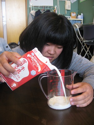 おやつのフルーチェ・ベビーカステラ(チョコ入り)作りの様子です