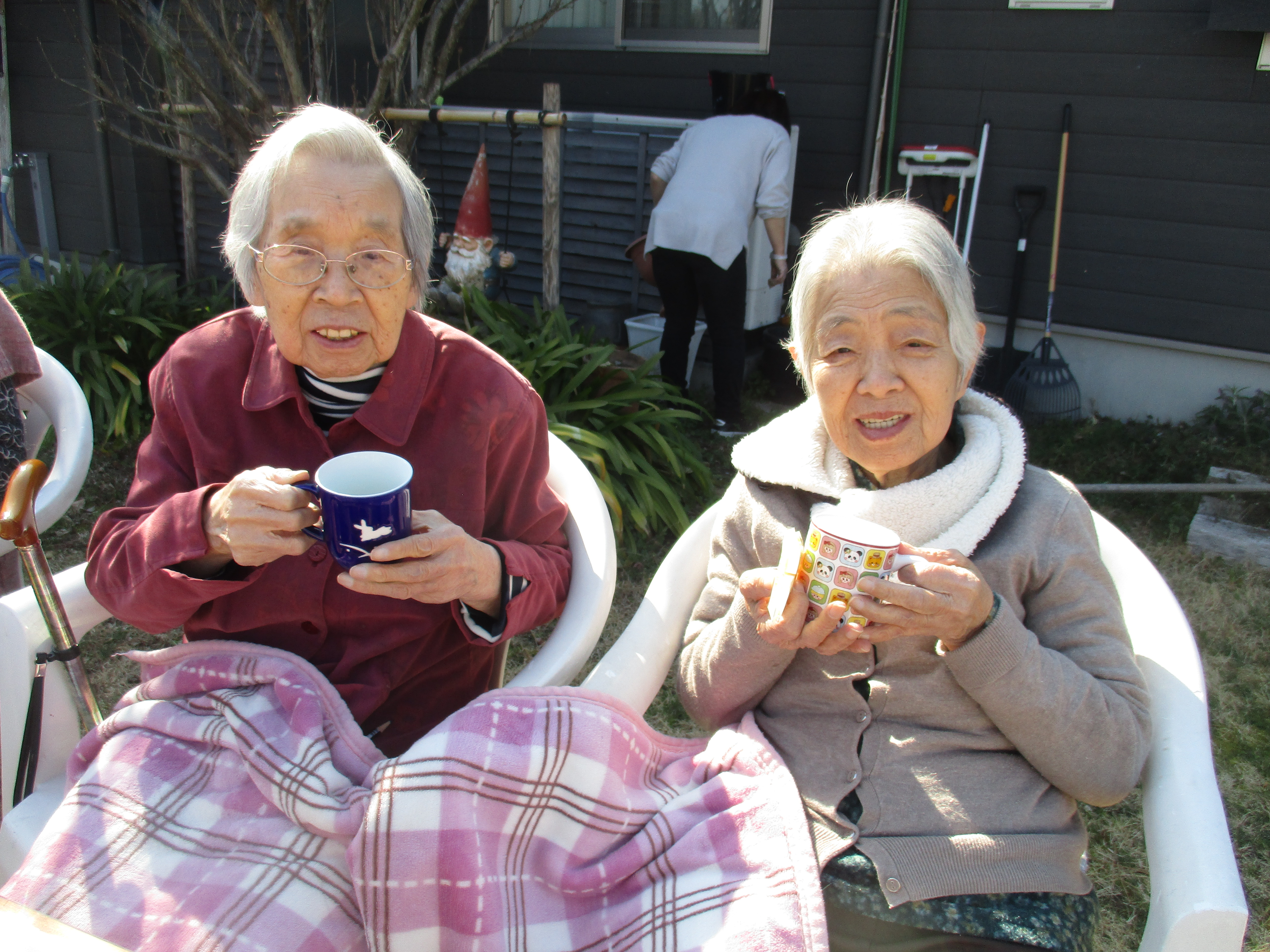 さてさて、休憩タイムです。春を感じながら、甘酒をいただきました。