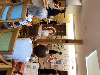 初めて見る太鼓、踊りに驚きつつも手拍子したり、太鼓のふりを真似したりして楽しまれました