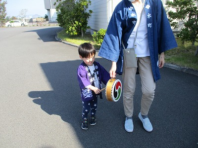 先生と一緒にちょうさを引っ張り
