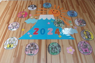 児童デイサービス ネムの木園のお正月の壁面飾りを