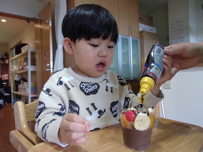 トッピングの次はチョコソースを好きなだけかけます(⁎˃ᴗ˂⁎)