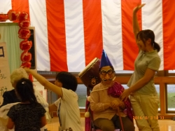 前日にテルテル坊主を作ってみたり、スタッフや施設長までテルテル坊主に