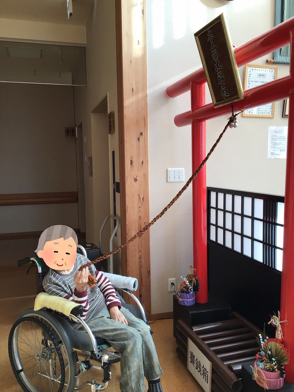 1/1~1/15まで特養ネムの木では、玄関に職員の作成した鳥居とおみくじを設置させていただきました。鳥居はとてもしっかりと作られており、鈴と縄を付け、振ると音が鳴るようになっていました。またおみくじは全16種類あり、ご利用者様だけでなく...